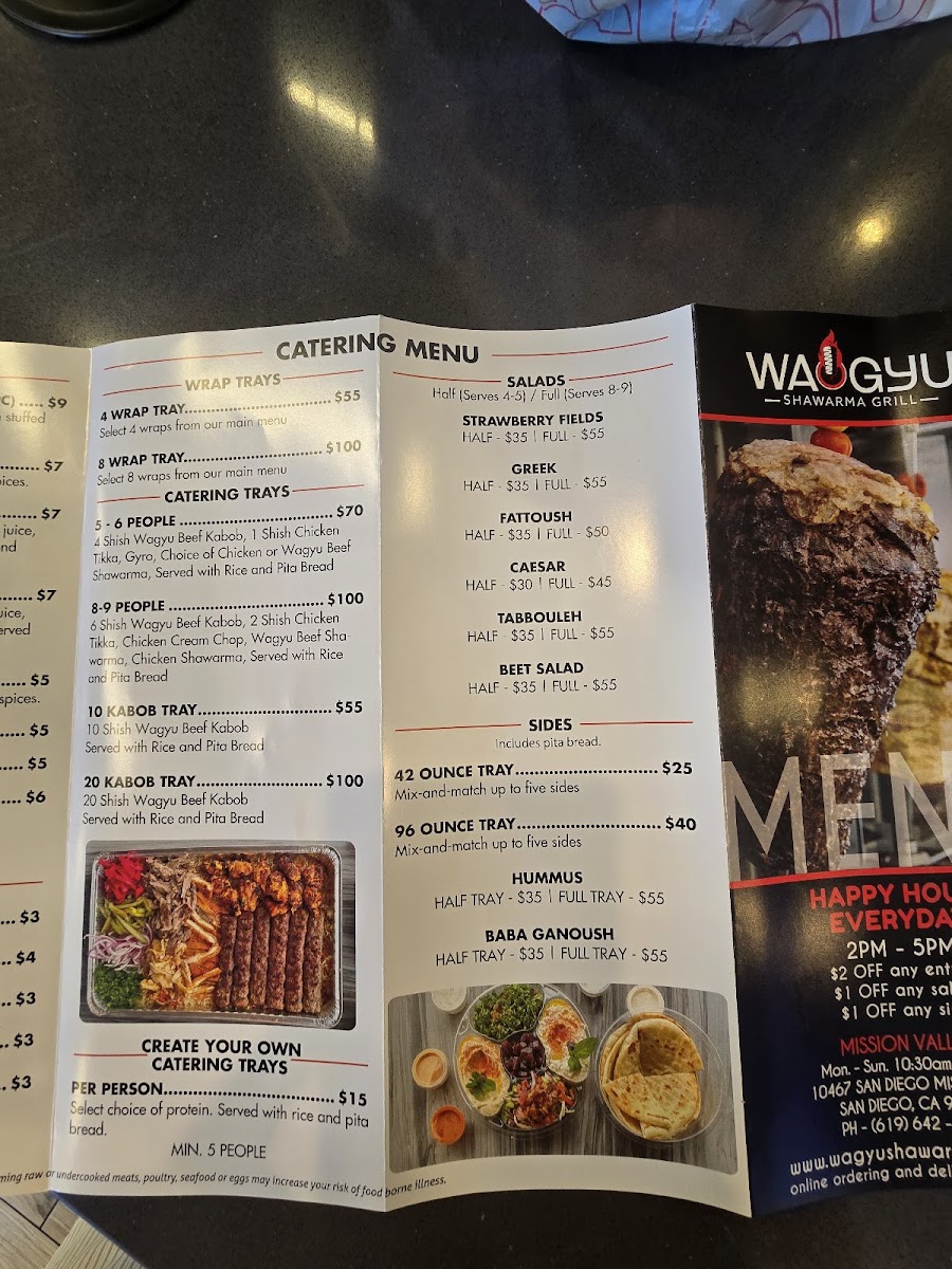 Welcome to Wagyu Shawarma Grill in Mission Valley, an exquisite culinary destination nestled in the heart of San Diego at 10467 San Diego Mission Rd. This Mediterranean restaurant offers an elevated dining experience with a remarkable range of dishes, all crafted around the rich and tender flavors of Wagyu beef. The warm, inviting atmosphere makes it perfect for casual dining with friends, family outings, or even a quick lunch break.